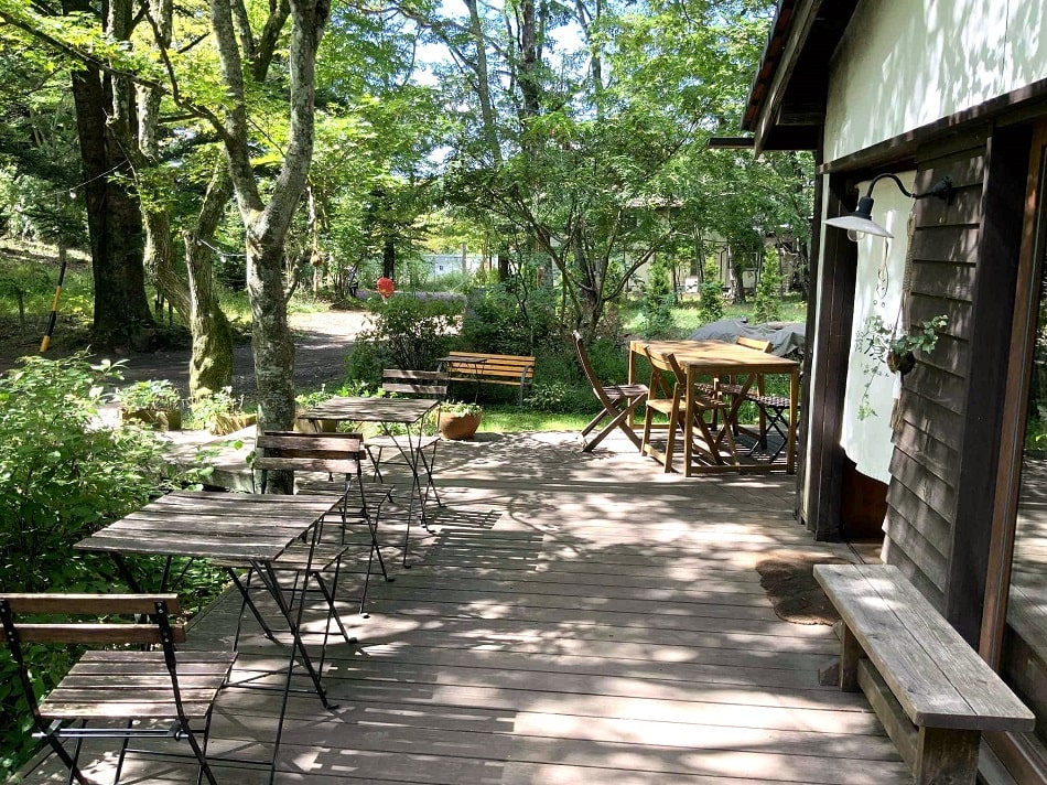 その後、「沢村旧軽井沢」さんのテラスでコーヒーを飲みながら、PCルーチン作業を小一時間ほど。